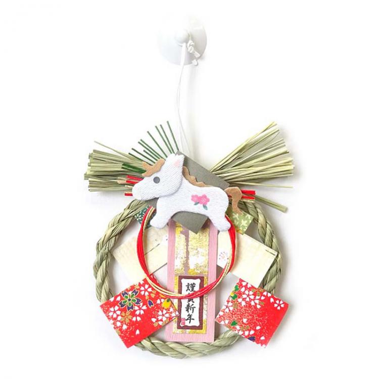 リース状になったしめ縄に、かわいらしい干支の午モチーフが付いたデザインです。