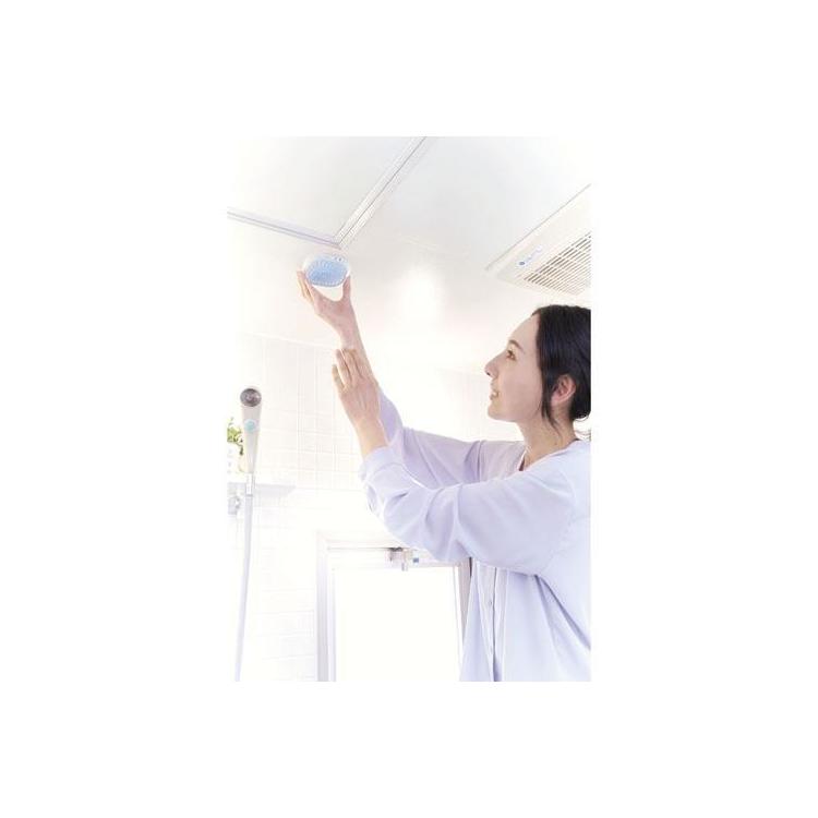 お風呂の天井に貼ったり、吊り下げフック付きなので、浴室乾燥のポールなどにご使用いただけます。