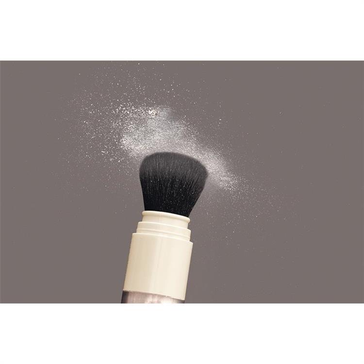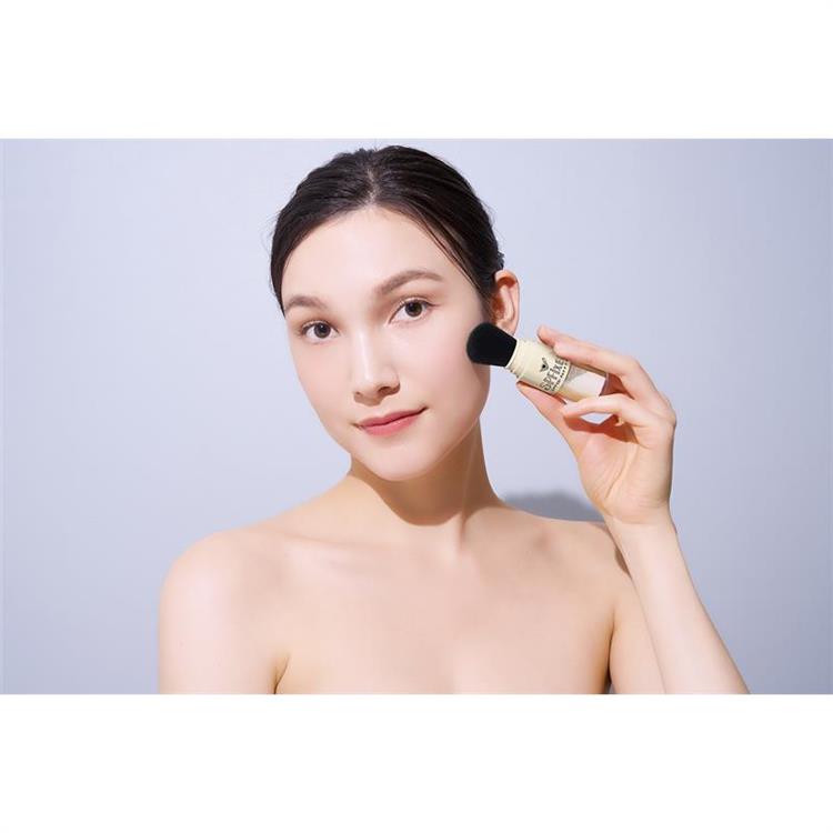 - ファンデーション、メイク後に、ブラシを顔の中心から外側に向かってムラなくゆっくり塗り広げる。