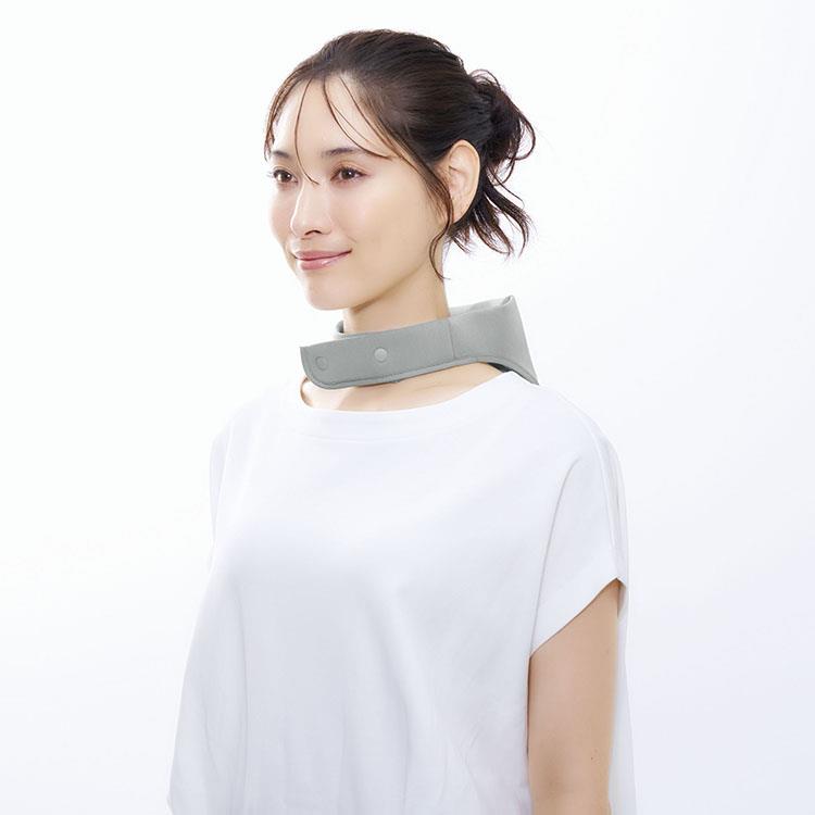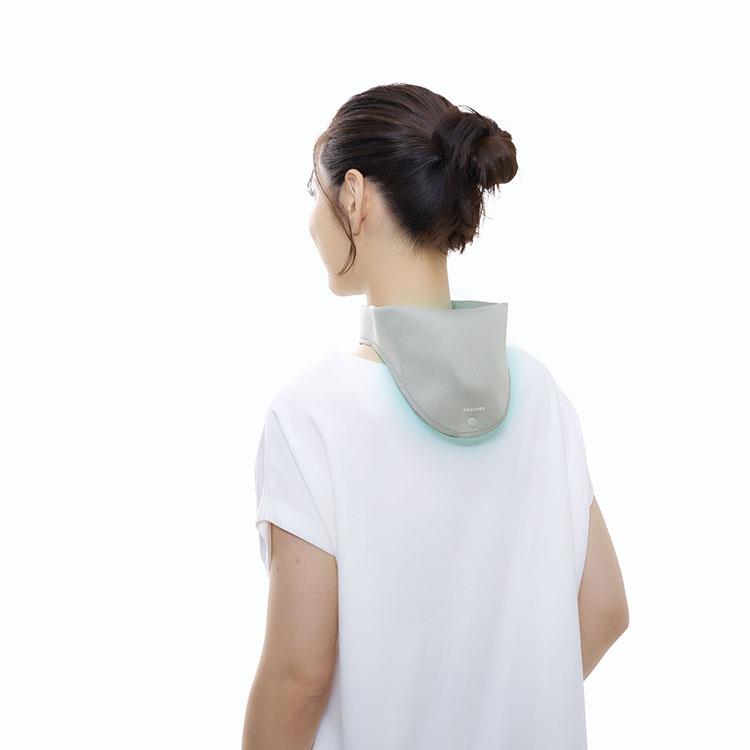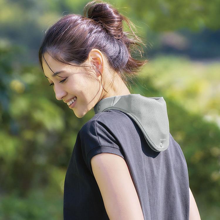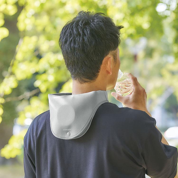 3.COOLOOPのロゴが外側にくるようにして首にかけ、ホックを留めてください。