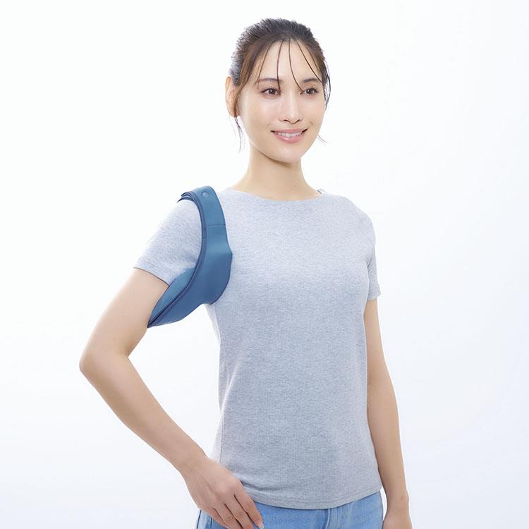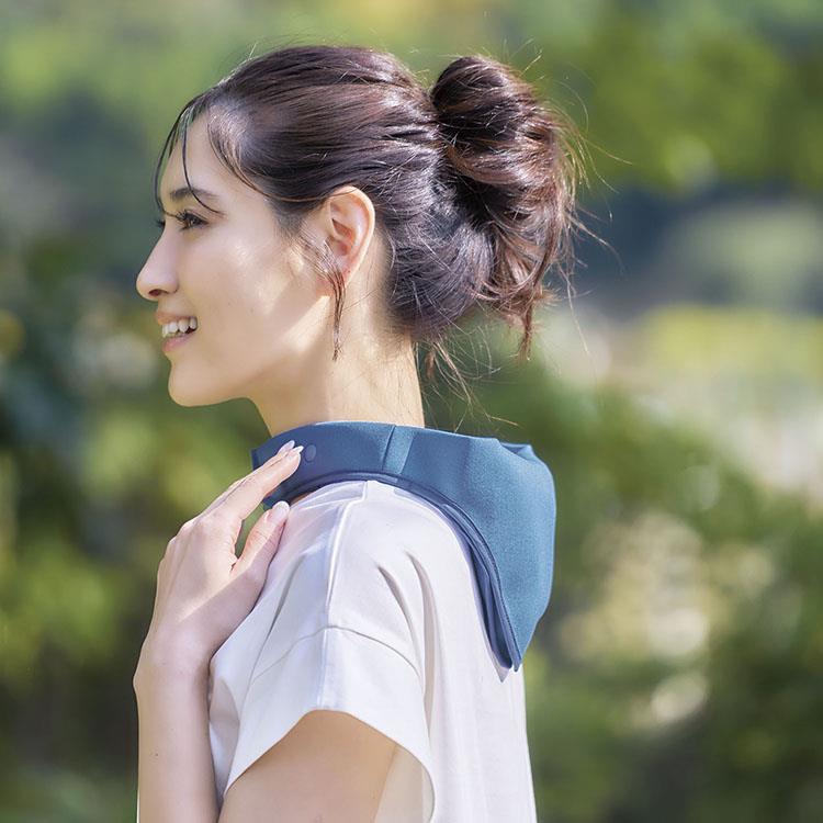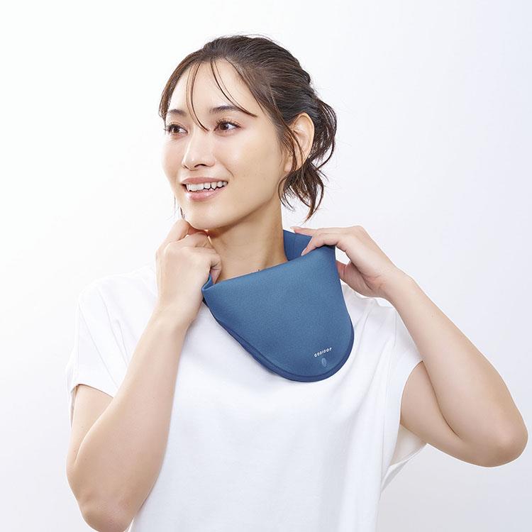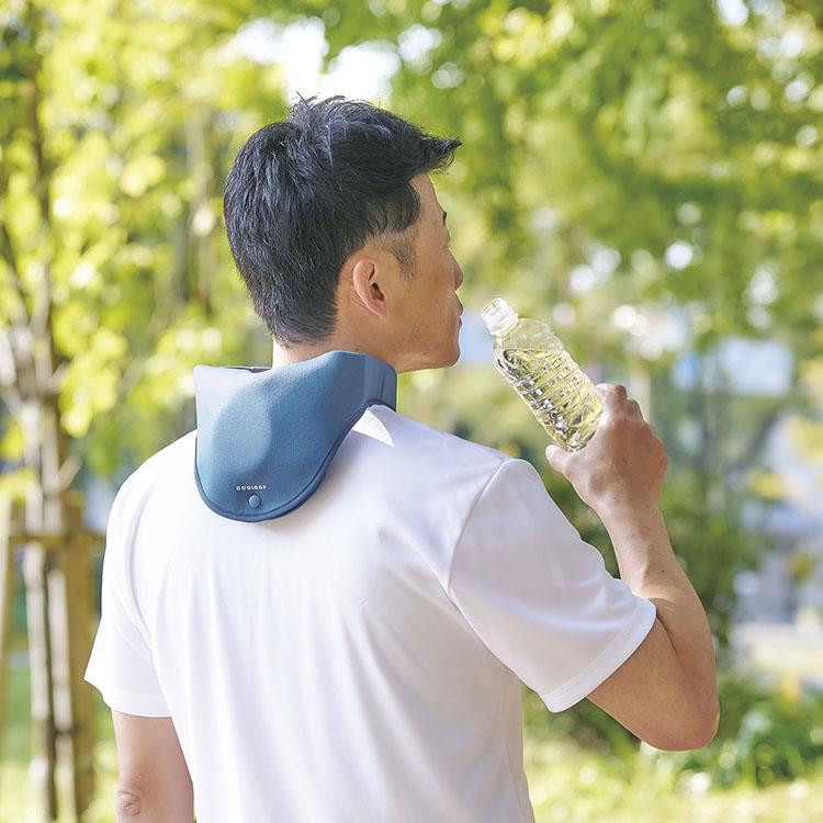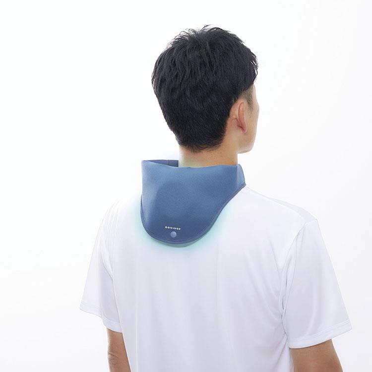 3.COOLOOPのロゴが外側にくるようにして首にかけ、ホックを留めてください。