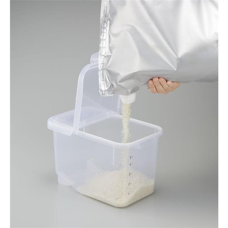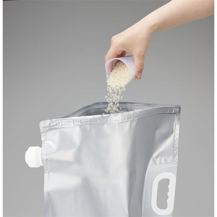 三層構造で〈PET・アルミ・ポリエチレン〉光からお米を守る。