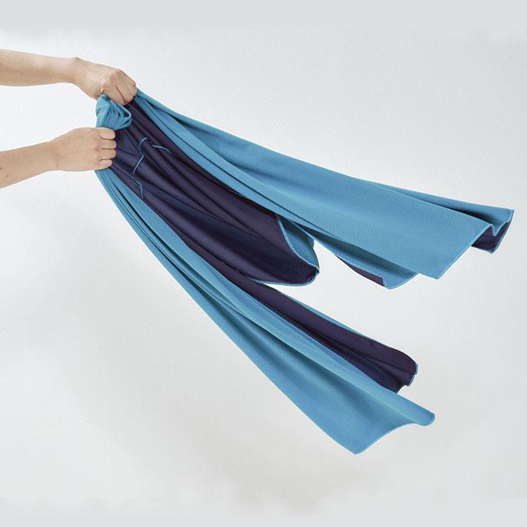 水分が蒸発する時に、周囲から熱を奪うという気化冷却の原理で、本品に触れてる部分がひんやり感じられます。