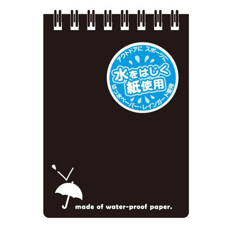 表紙にポリプロピレン、本文は水をはじく撥水ペーパーを使用した水に強いレインガードメモです。