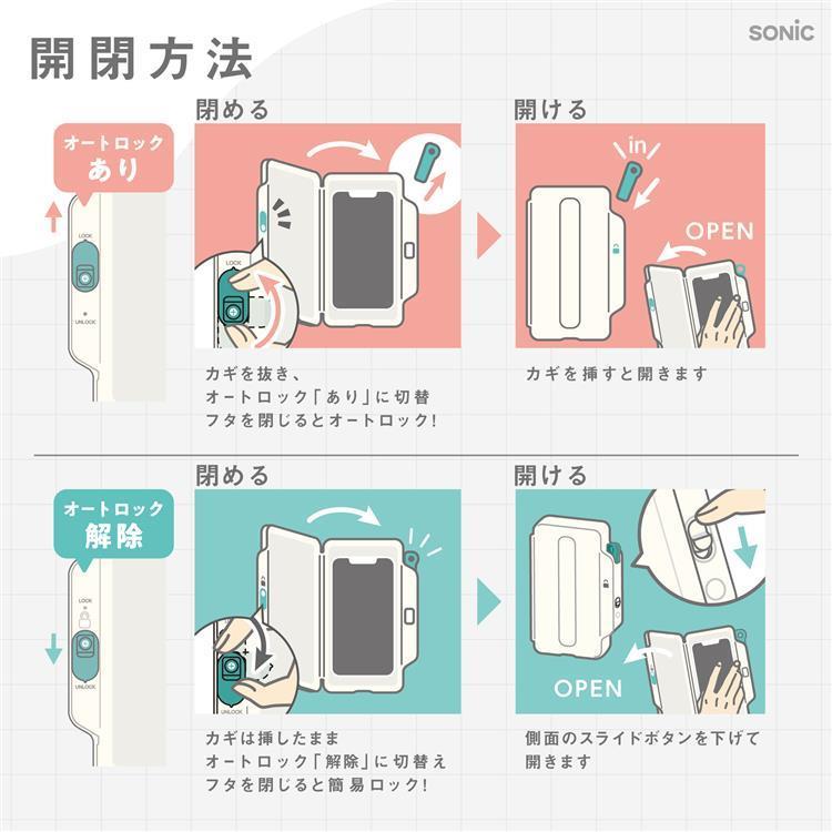 スマホを収納してフタを閉じると自動でロックがかかります。