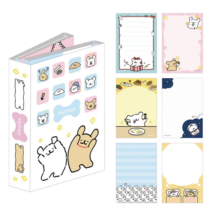 モルチーズとレトリバーのイラストが描かれたメモ用紙が6柄セットされています。
