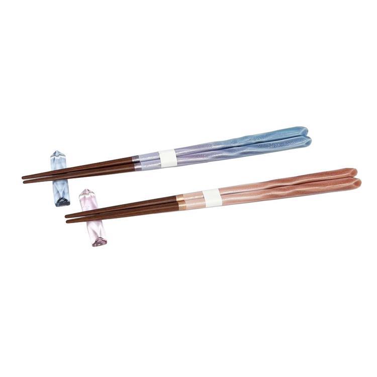 - 箸・箸置セット 一双 天女の舞 グリーン/ピンク