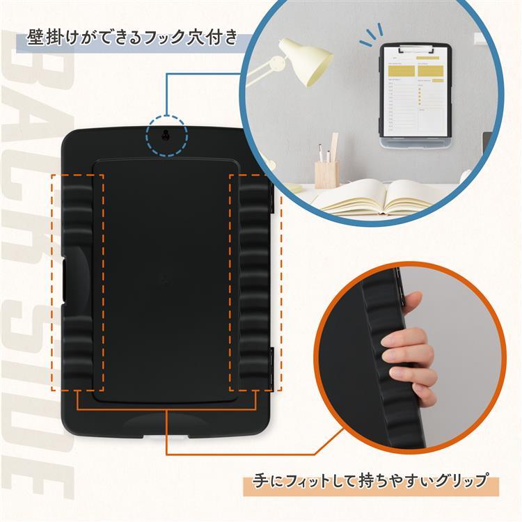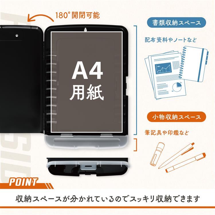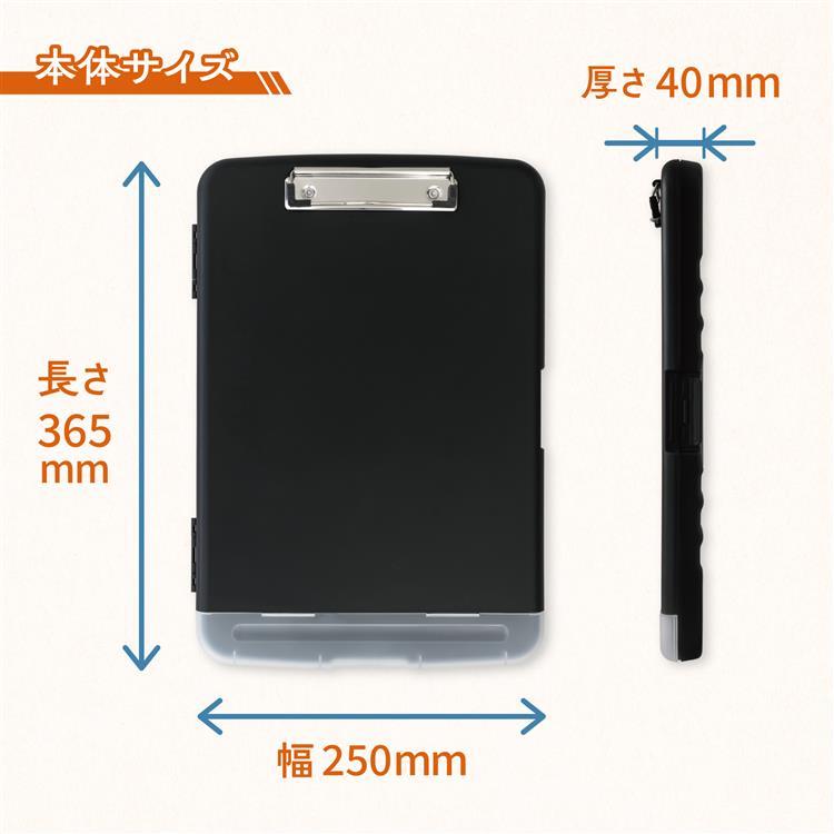 - 収納付きクリップボードケース A4 ブラック