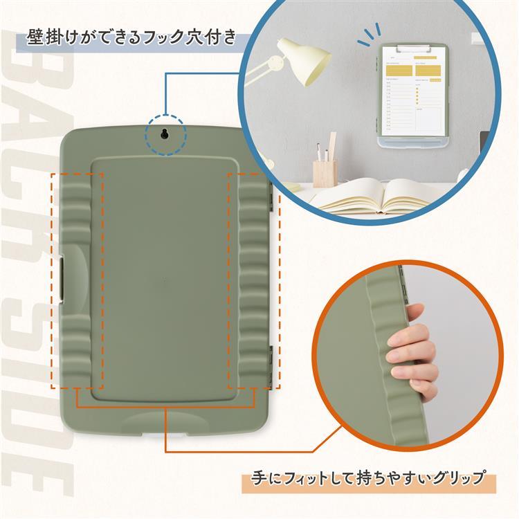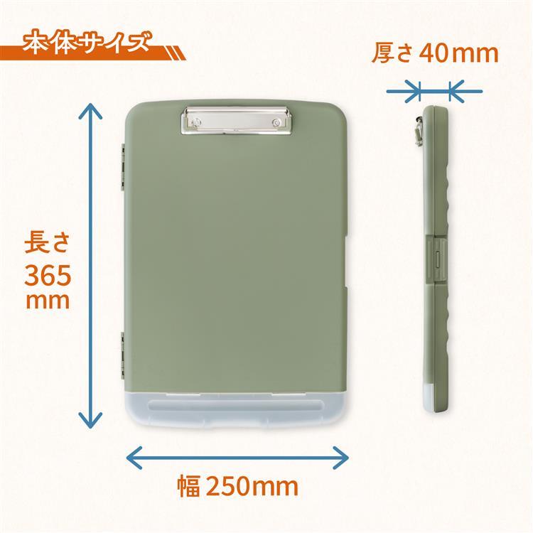 - 収納付きクリップボードケース A4 カーキ