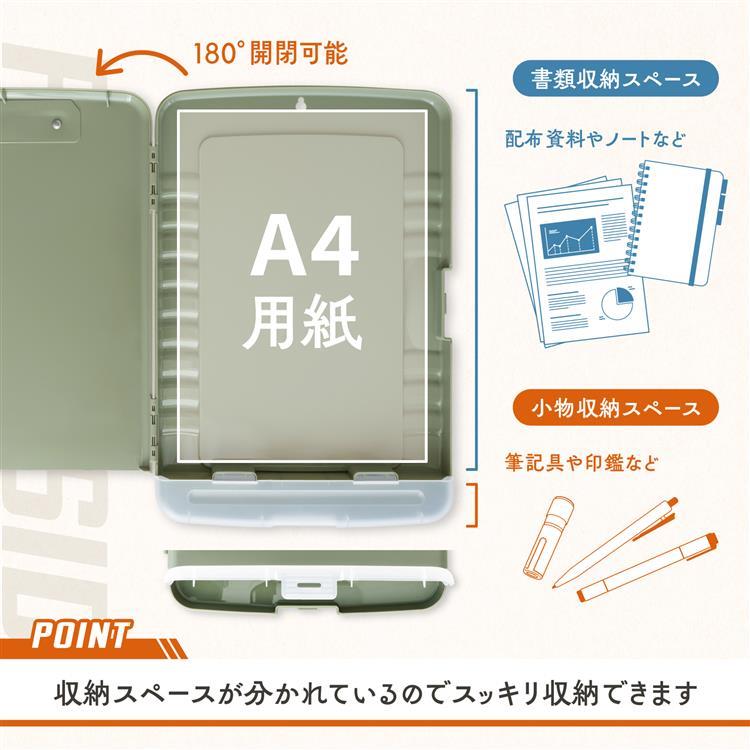 収納付きクリップボードケース A4 カーキ