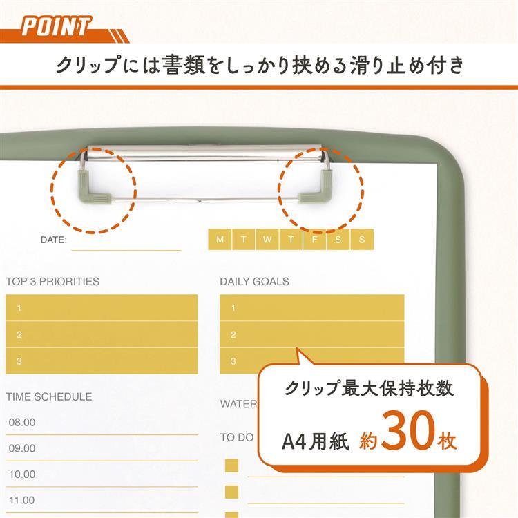 ・クリップ両サイドには滑り止めが付いており、書類をしっかり固定します。(※クリップ最大保持枚数:約30枚)