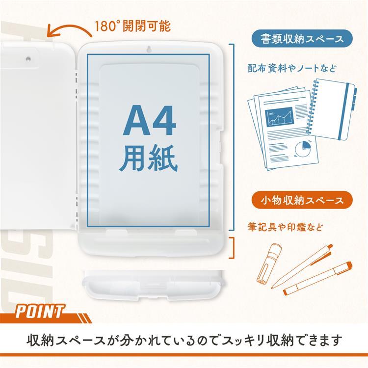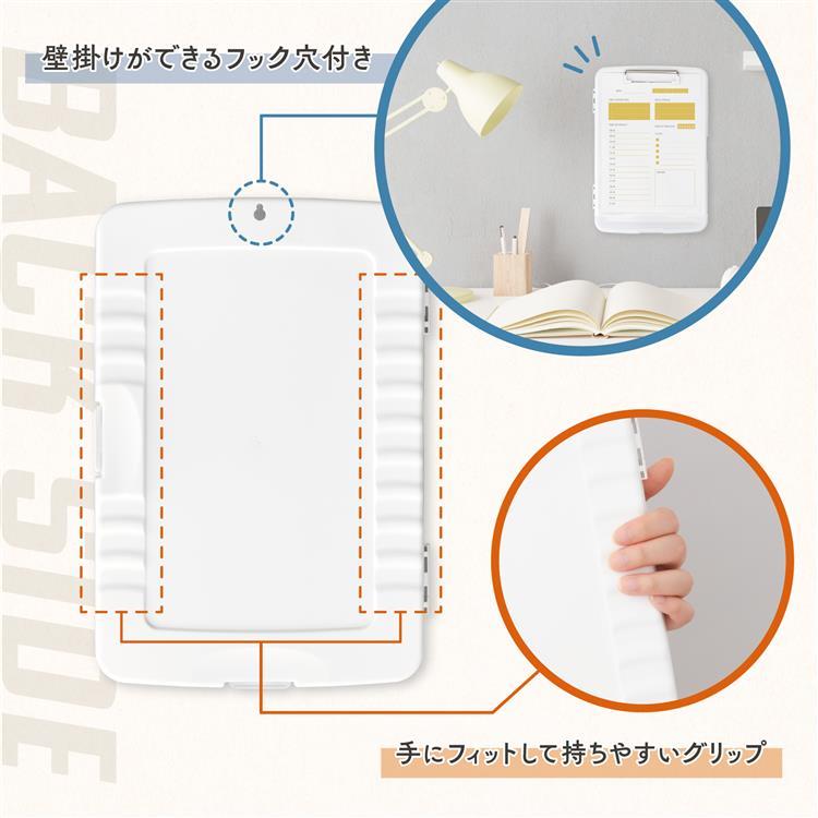 - 収納付きクリップボードケース A4 ホワイト