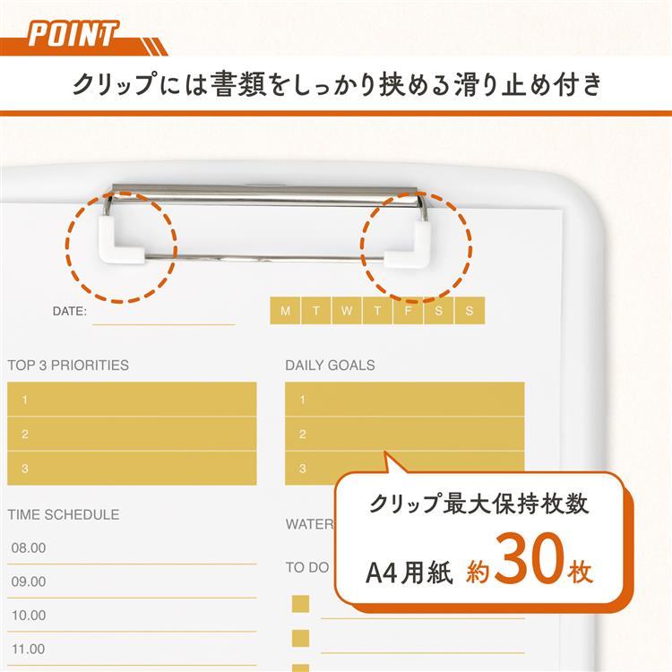 ・クリップ両サイドには滑り止めが付いており、書類をしっかり固定します。(※クリップ最大保持枚数:約30枚)