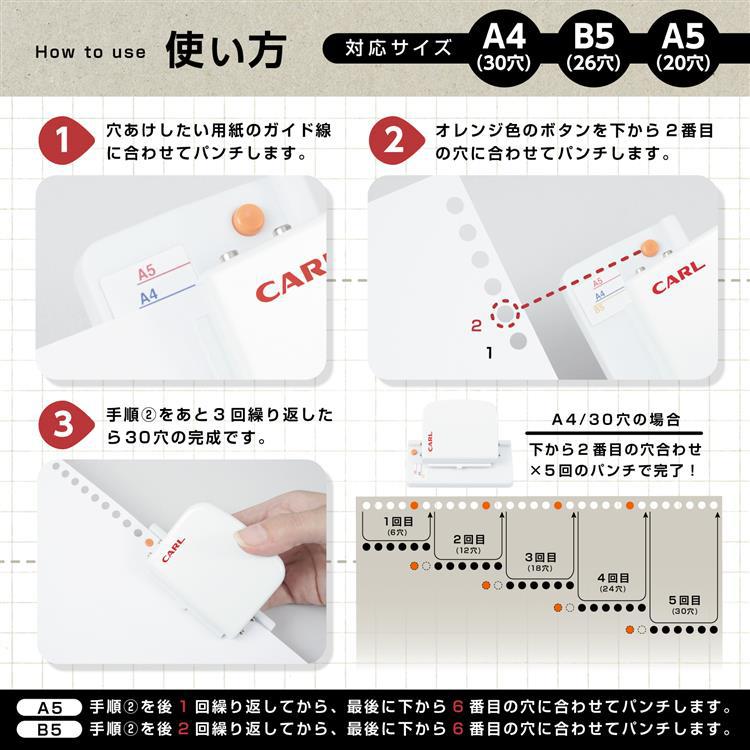 A4・B5・A5サイズのルーズリーフ作成に対応したパンチです。