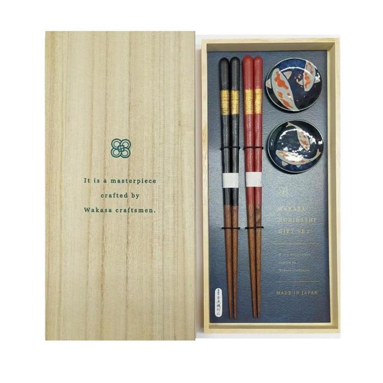 優雅に泳ぐ鯉が描かれた箸置きがポイントのギフトセット