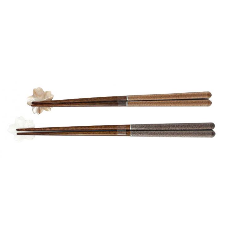 落ち着いた色合いのお箸と、桜型の箸置きが可愛いペアギフトセット。