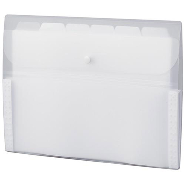 A4サイズの書類を5仕切6ポケットで分類整理。間口が大きく開くから書類が取り出しやすく、書類を入れたまま検索できます。