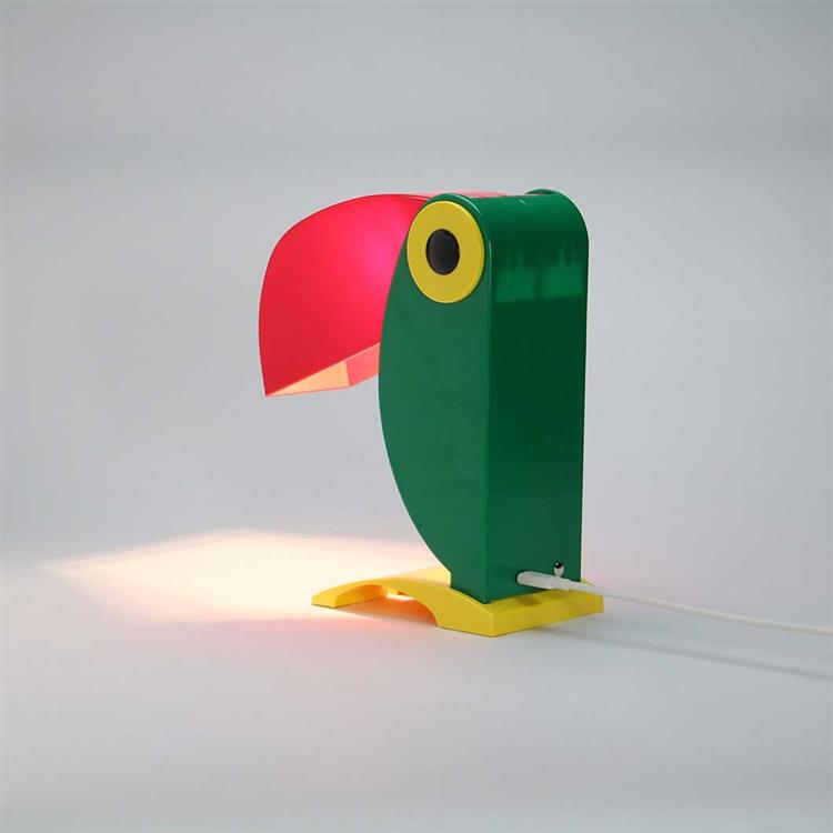 南米の鳥オオハシをモチーフにしたこのランプは、アイコニックなデザインとフォルムが特徴的で、今でもミッドセンチュリーのヴィンテージコレクターの間では高い人気を誇っています。