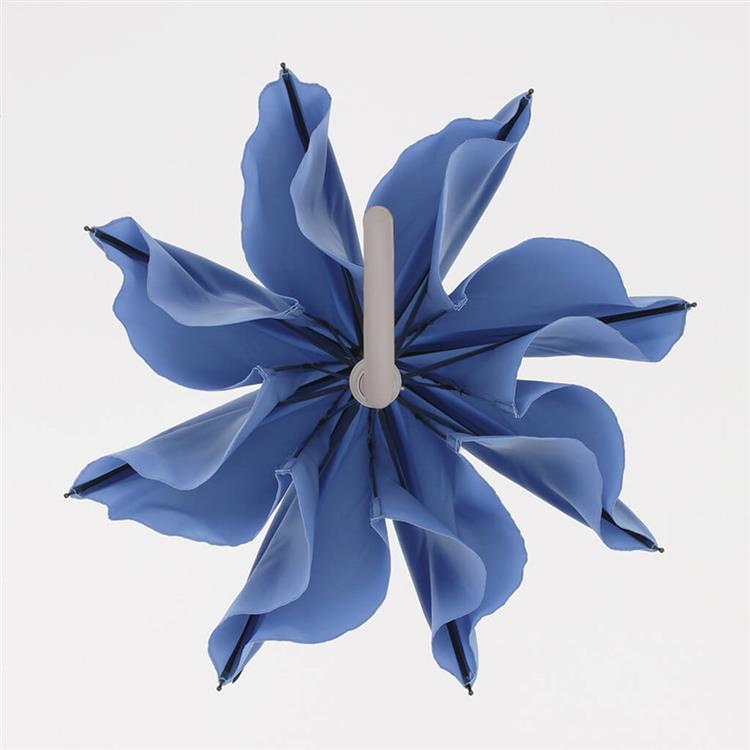 閉じる動きに連動して骨が回転し、軸を中心に生地をくるくると巻き込むスパイラル機構を採用。ベルトなしですぐにたたむことができます。