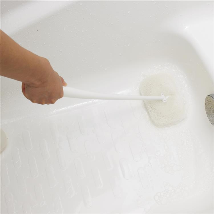 らくな姿勢のまま、手で擦るようにしっかり洗えるバスブラシ