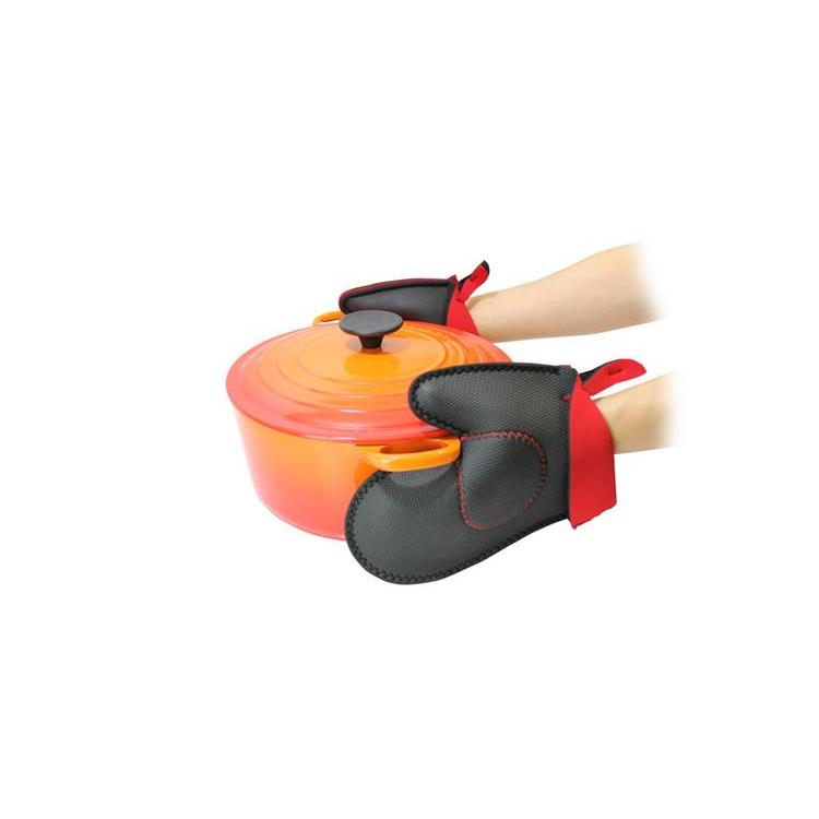 ラバー素材ですべりにくく、しっかりつかめる鍋つかみミトン。