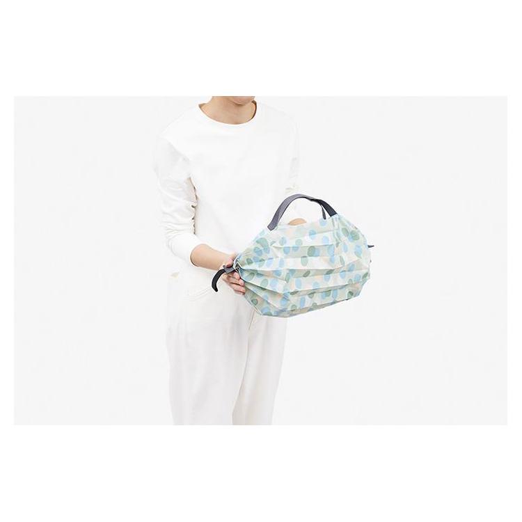 両端を引っ張るだけで一気にたためるコンパクトバッグ。