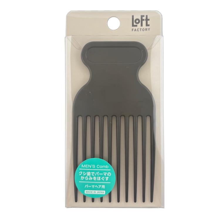 パーマ髪のからみをほぐす弾力性のある長いクシ歯を備えたメンズ用コームです。