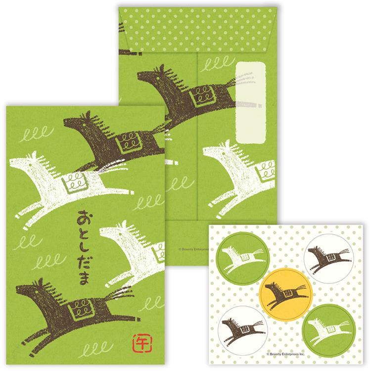 - 年賀ポチ袋 干支柄 跳ね馬 3枚入り