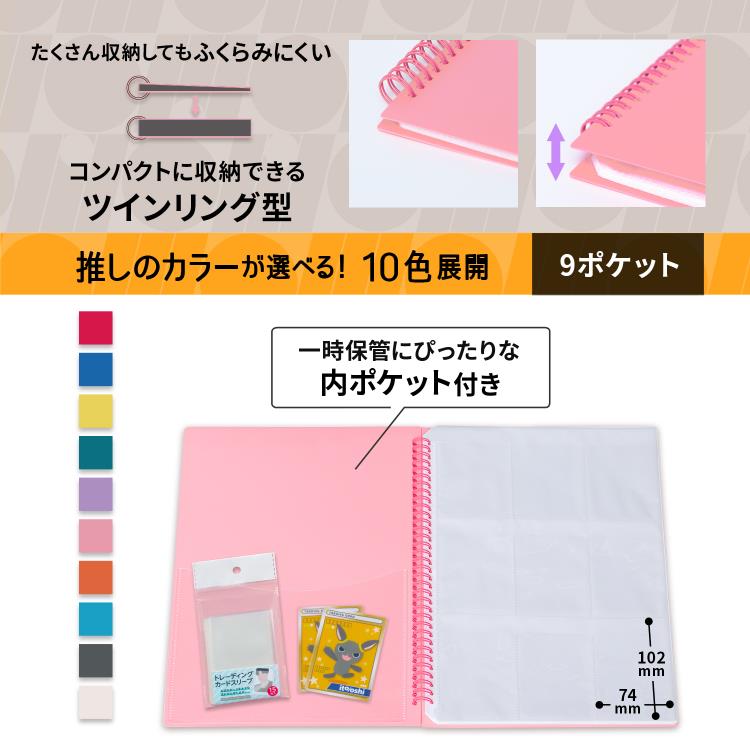 トレーディングカードやチェキなどカード類が収納可能で、表紙内側に一時保管に最適なポケット付き。
