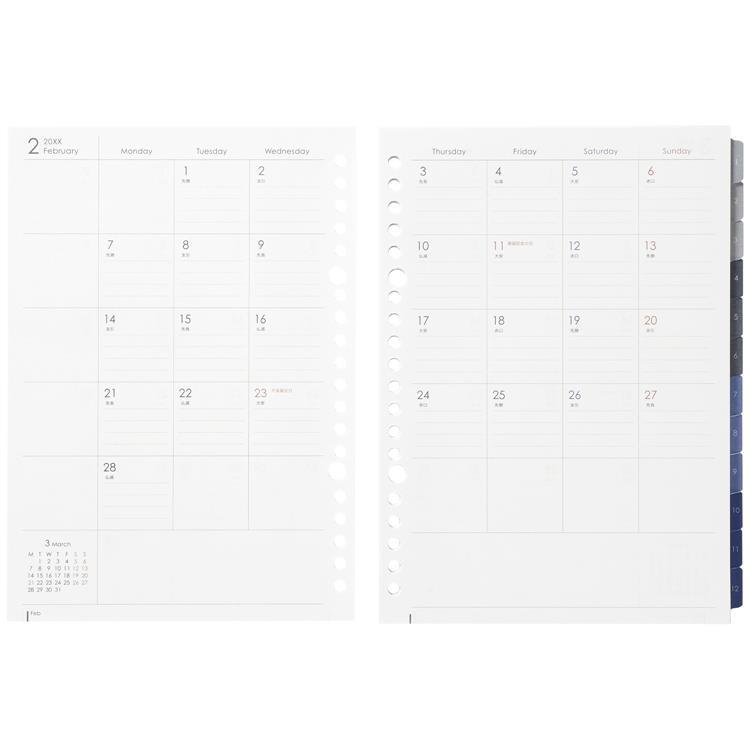 2026年1月始まり 週間バーチカル A5 ルーズリーフダイアリー