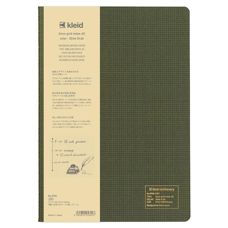 文字もイラストも綺麗に書くことができる、kleid(クレイド)独自の2mm方眼ノートです。