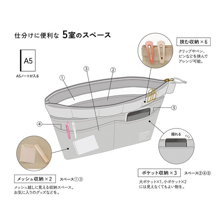 マチ付きなので、A5サイズのノートや文房具をまとめてスマートに持ち歩けます。