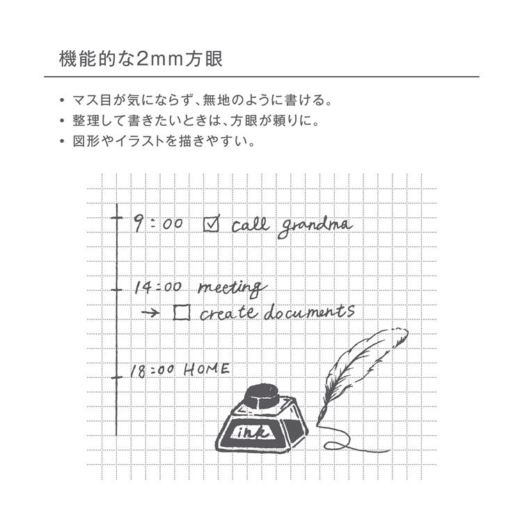 「OKフールス紙」と「2mm方眼」の要素はそのままに、巻末には両面ポケット付属。