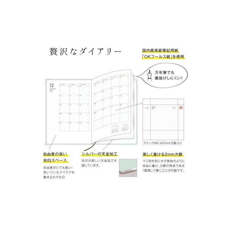 トレンドカラーの上質なカバーにコーナー金具、中身は「OKフールス紙」×「2mm方眼」、光沢が美しい天金加工とまさに贅沢な仕様。
