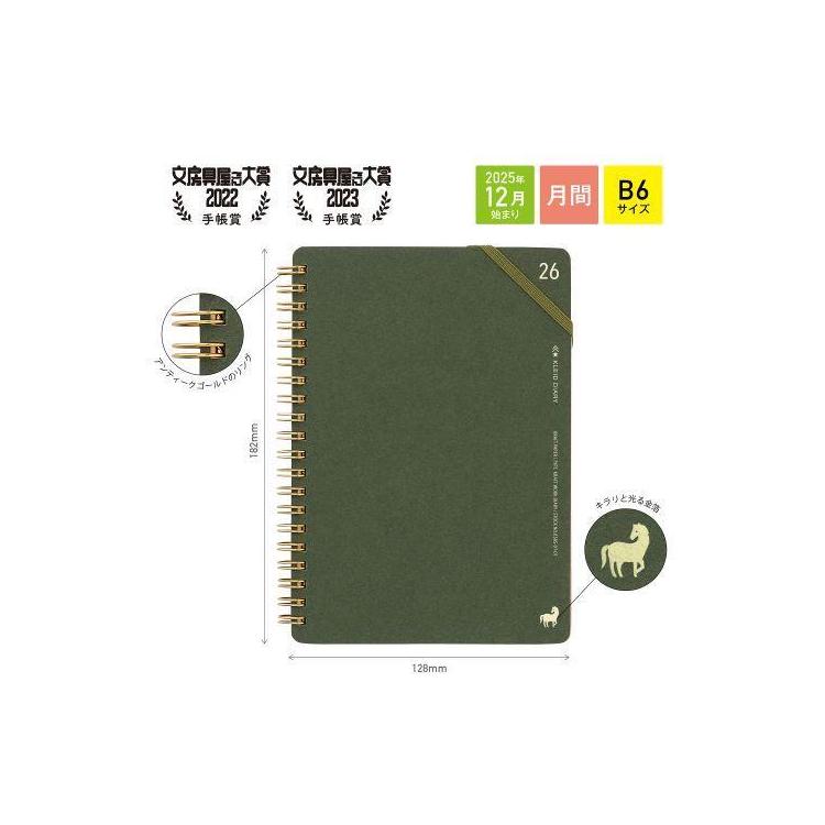 - 2025年12月始まり手帳 月間 B6 クラフトワーク オリーブ