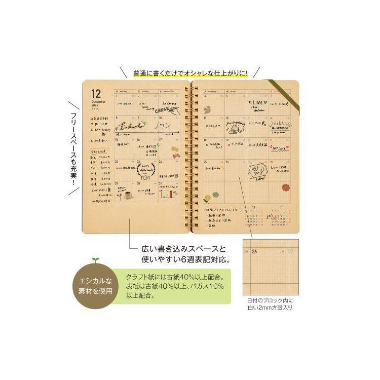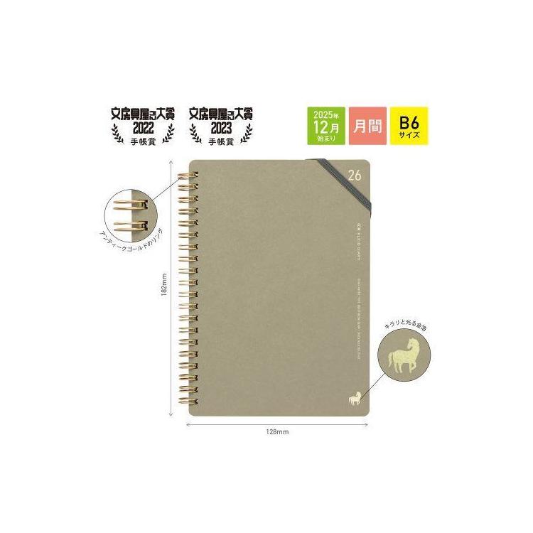 - 2025年12月始まり手帳 月間 B6 クラフトワーク グレージュ