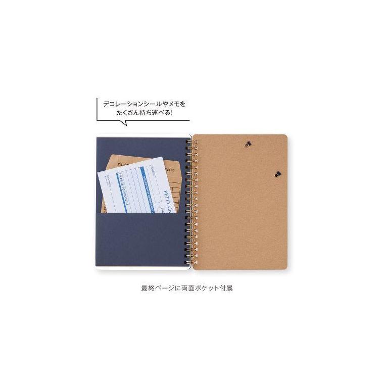 ペンホルダーやしおり代わりにも使える斜めのゴムバンド最終ページには便利な両面ポケットが付属。