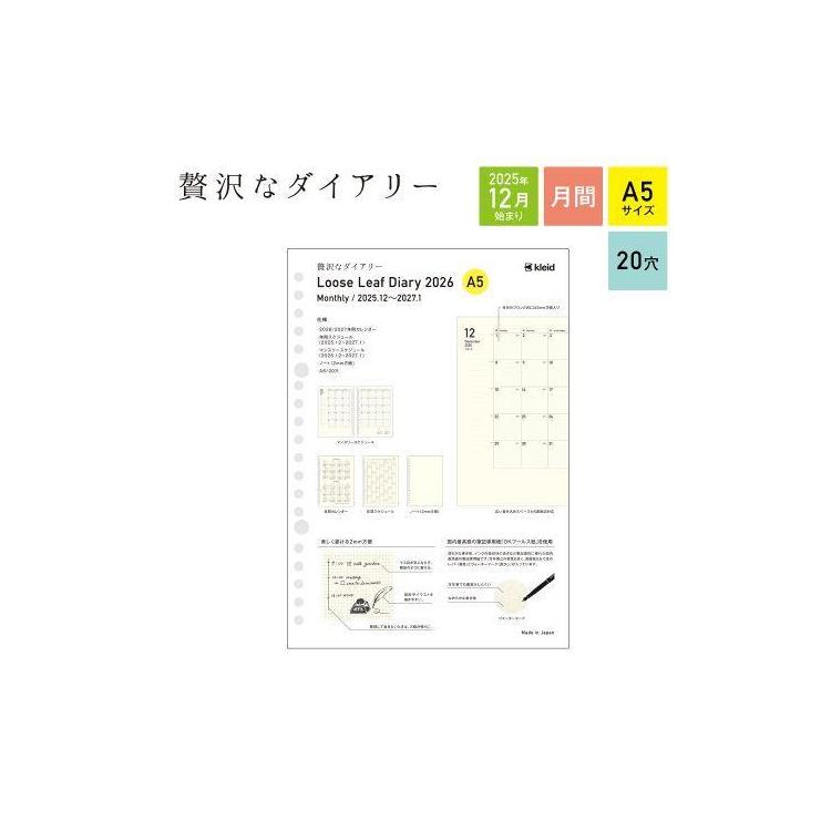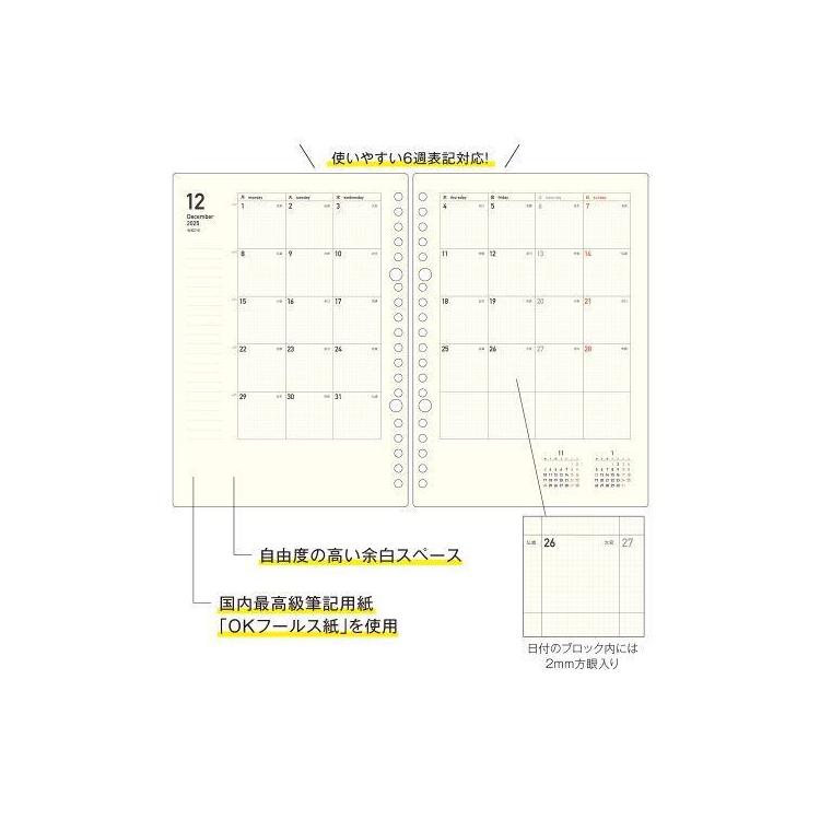 - 2025年12月始まり手帳 月間 A5 2mmグリッド クリーム