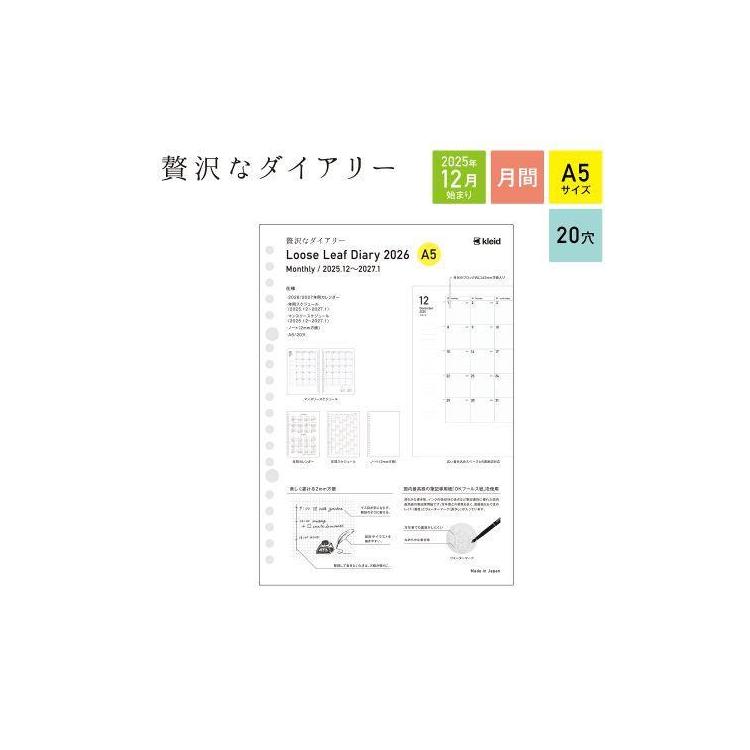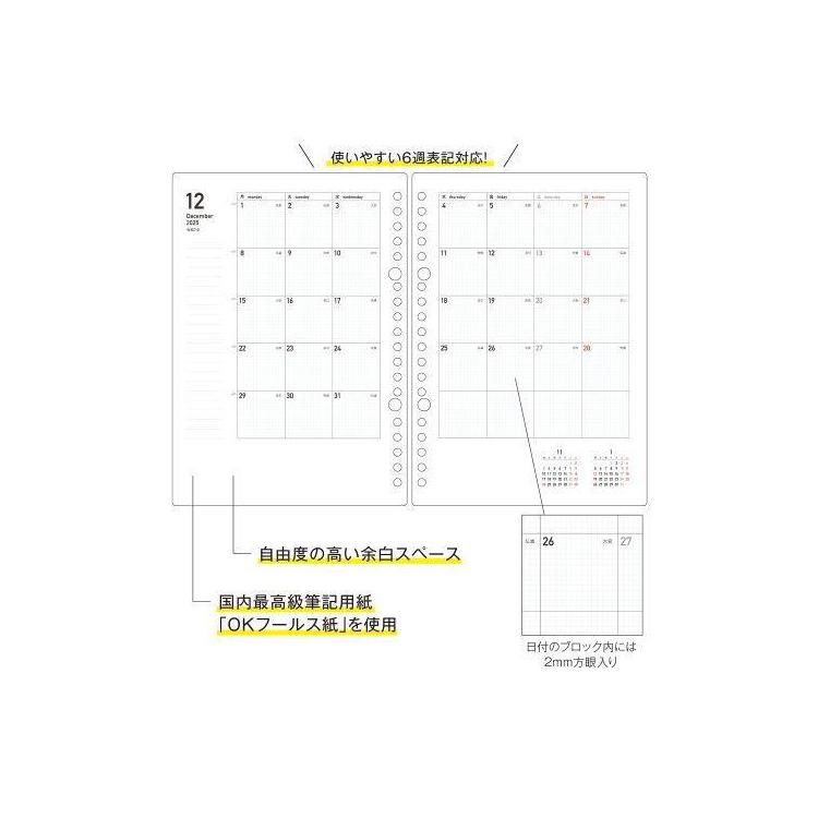 - 2025年12月始まり手帳 月間 A5 2mmグリッド ホワイト