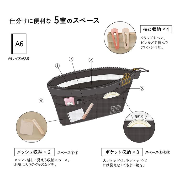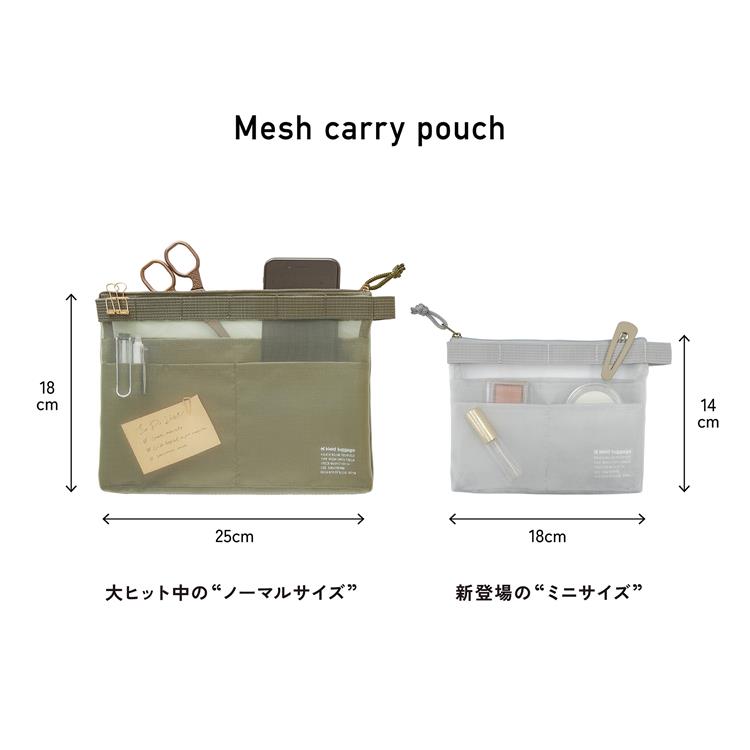 見せたいものをメッシュ(外側)に、見せたくないものをポケット(内側)に使い分けて収納する「Mesh carry(メッシュキャリー)」シリーズ・ミニ ポーチ。