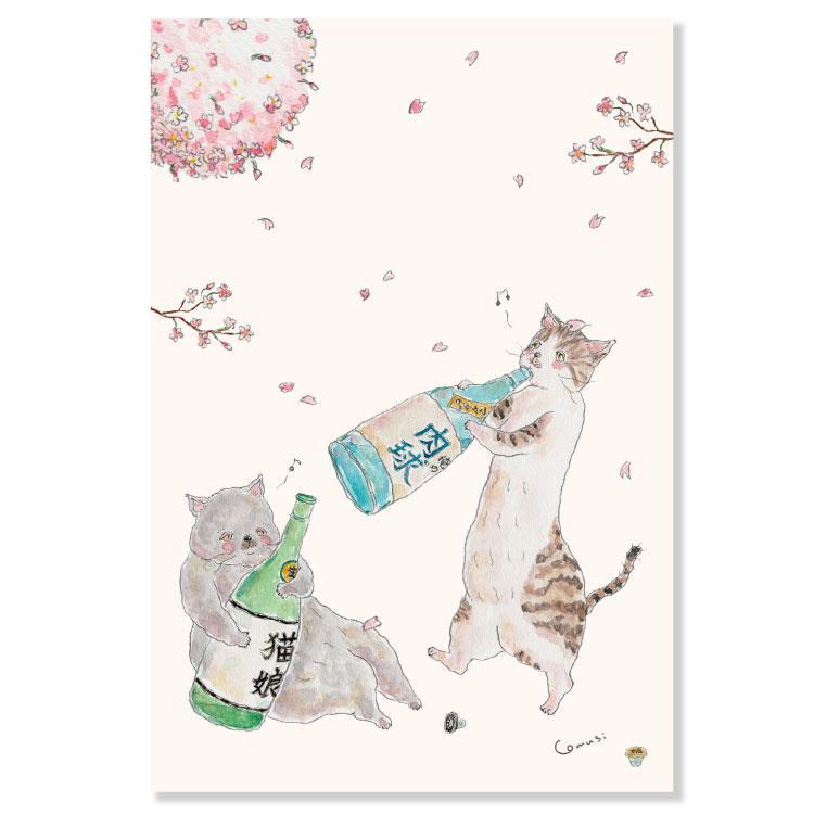- 春柄 ポストカード トコロコムギ ほろよいにゃんこ