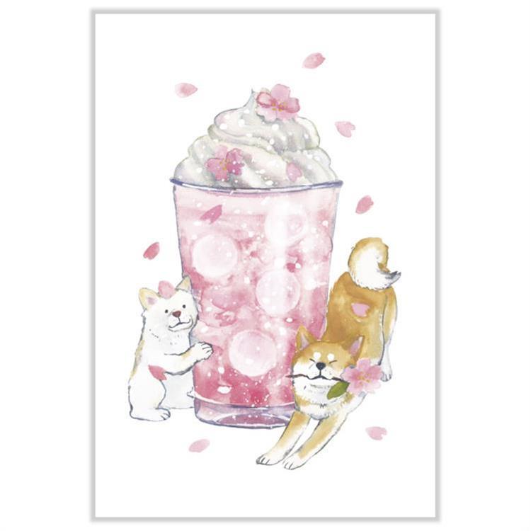 春柄 ポストカード 村田夏佳 しばいぬと春 桜ラテ