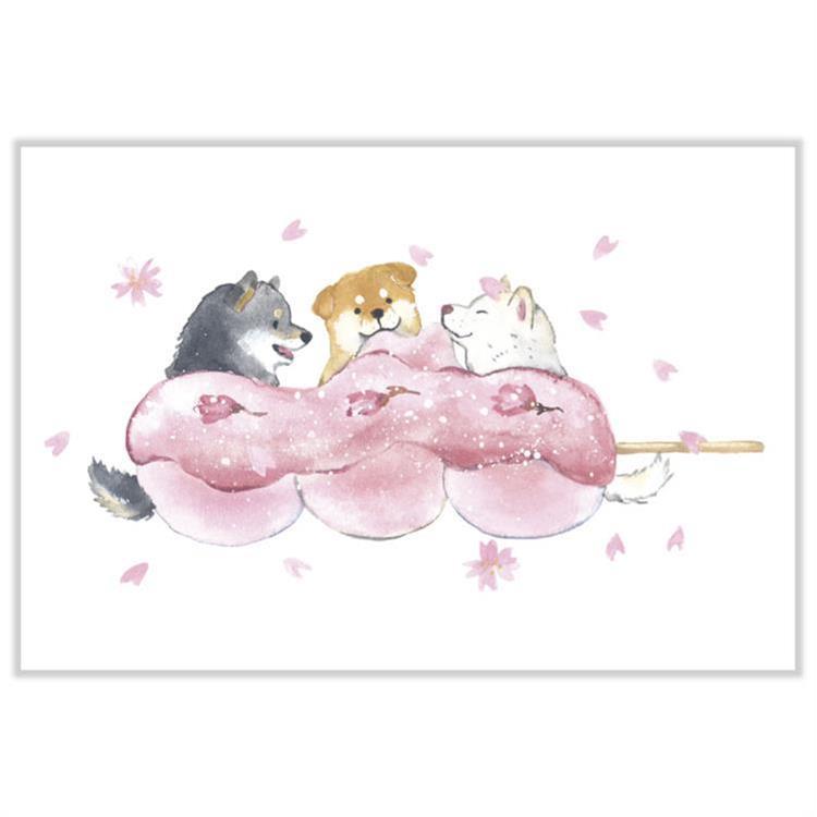 春柄 ポストカード 村田夏佳 しばいぬと春 桜団子