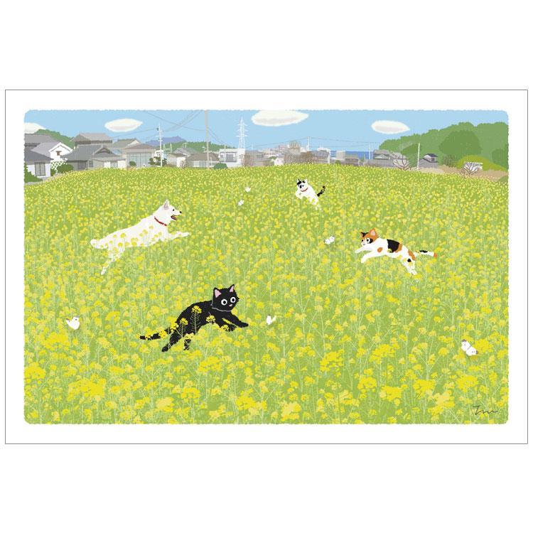 - 春柄 ポストカード もりとしのり たびねこ 菜の花ダンス
