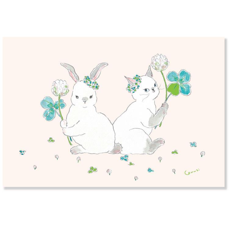 - 春柄 ポストカード トコロコムギ うさぎとクローバー