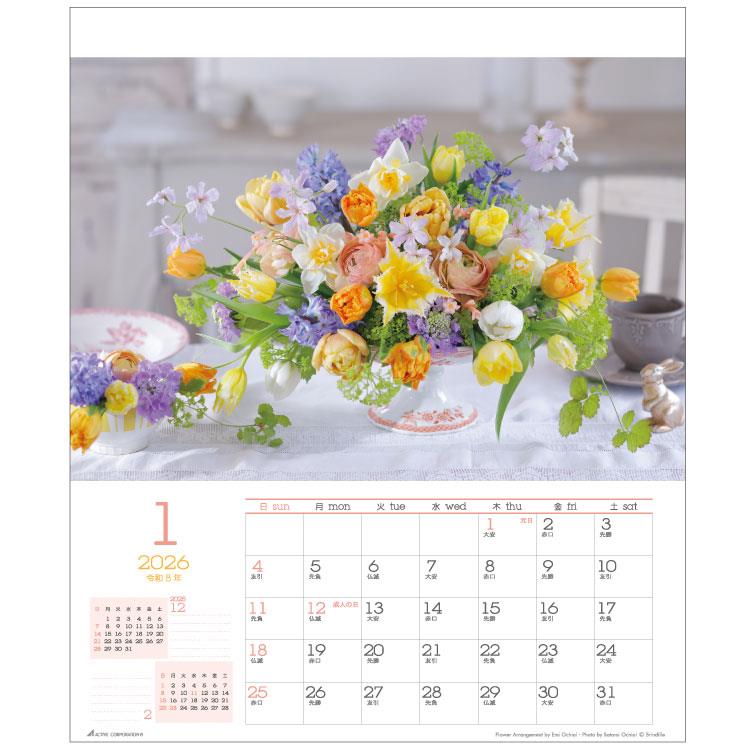 - 2026年1月始まりカレンダー 壁掛け Flower ACL-03