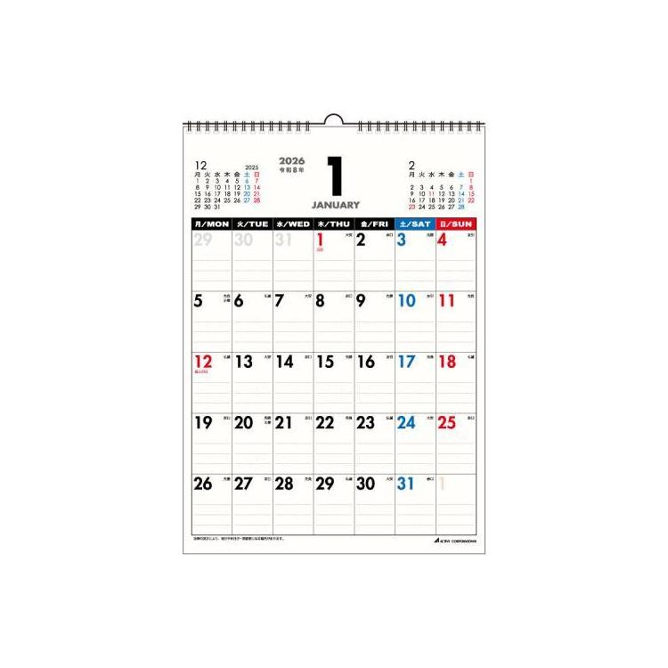 - 2026年1月始まりカレンダー 壁掛け A3 月曜始まり ACL-31