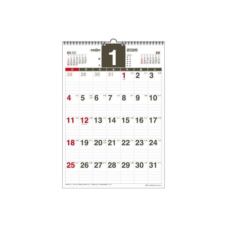 - 2026年1月始まりカレンダー 壁掛け B3 プランナー ACL-32