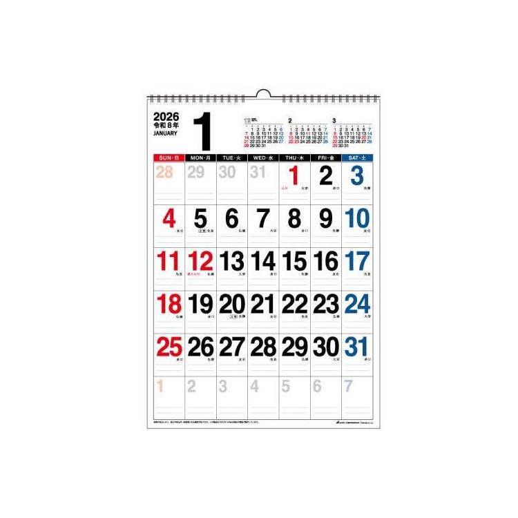 - 2026年1月始まりカレンダー 壁掛け B3 BIG文字 ACL-55