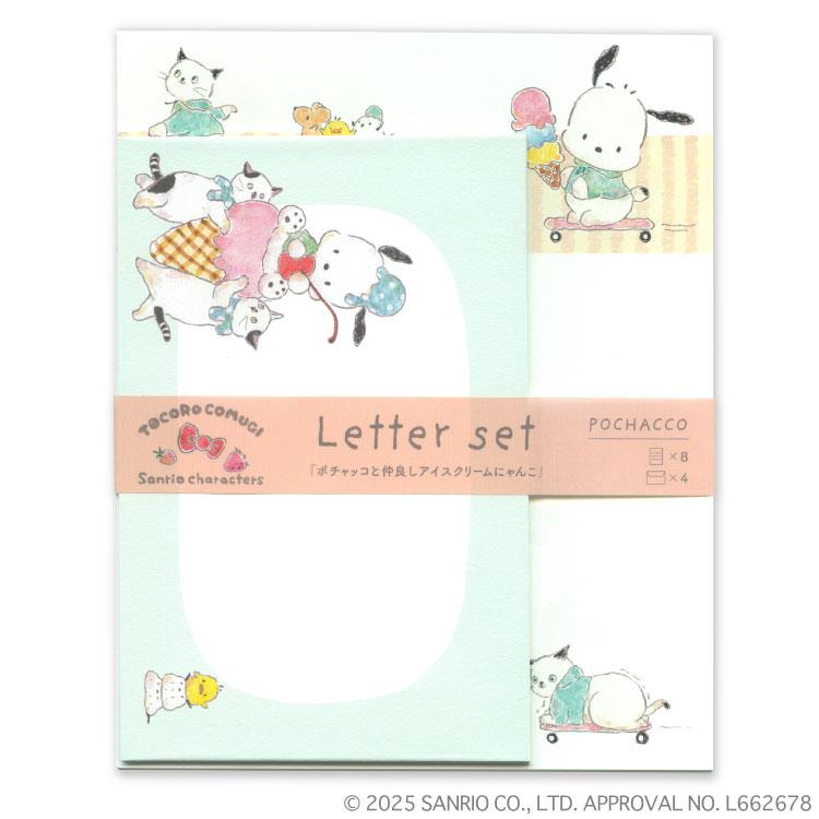 - レターセット トコロコムギ×サンリオキャラクターズ ポチャッコと仲良しアイスクリームにゃんこ